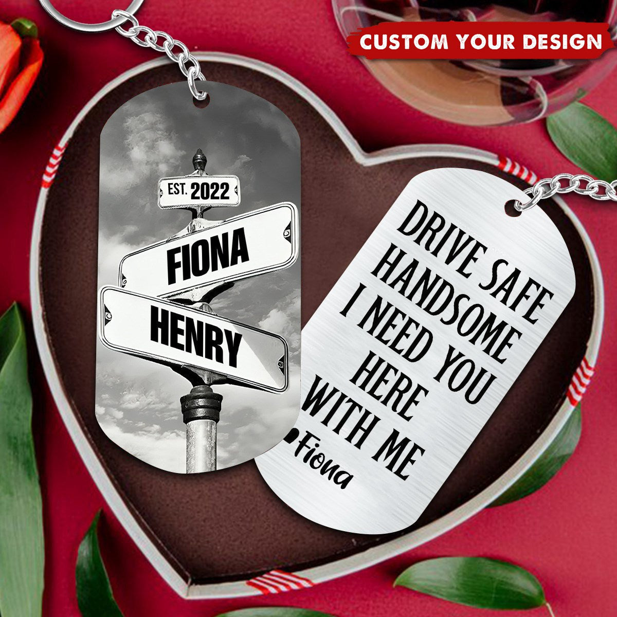 Drive Safe I Need You Vintage Crossroads Street Sign Personalized Stainless Steel Keychain