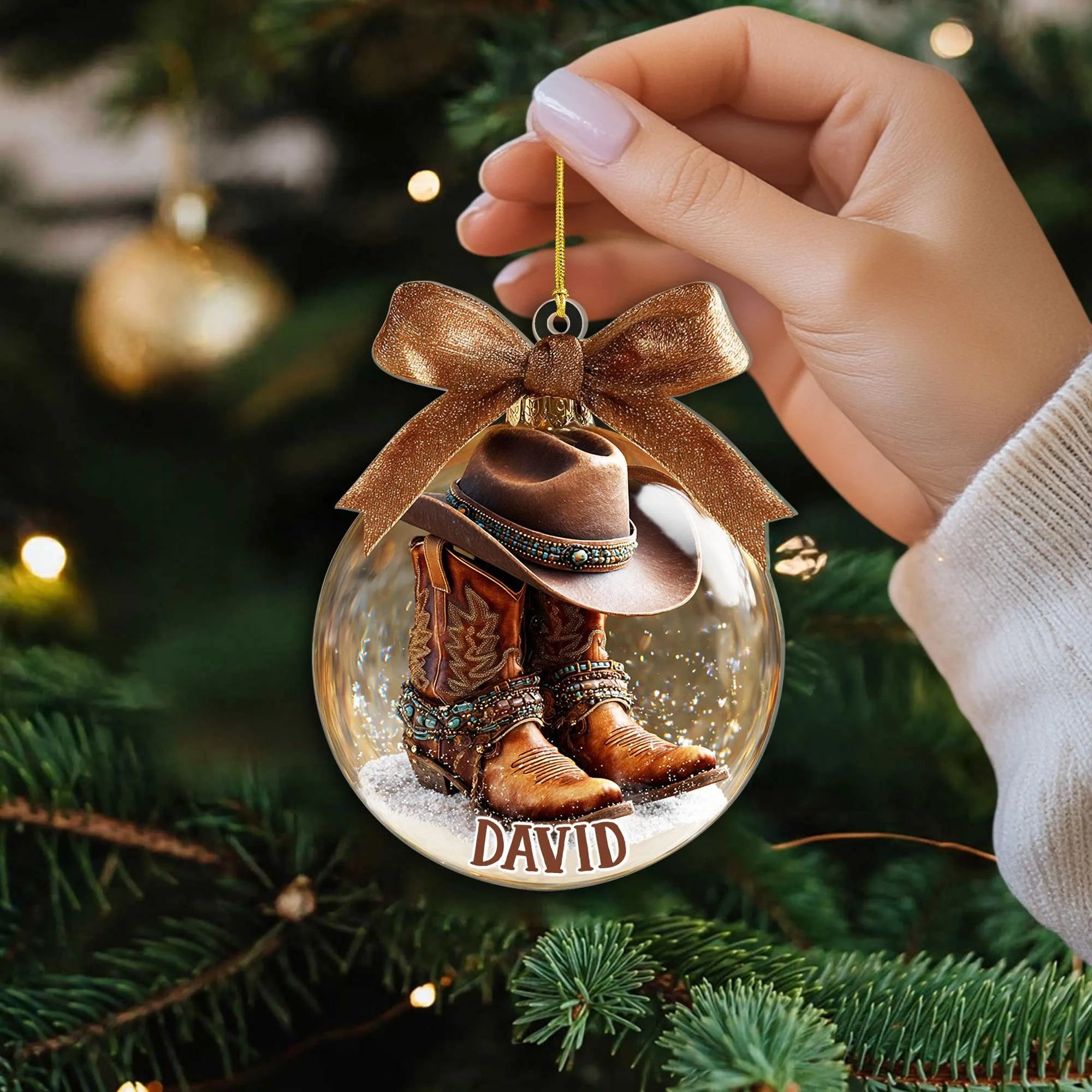 Personalized Cowboy Ornament, Custom Name Western Boots and Hat Ornament