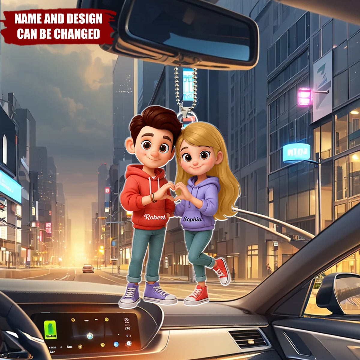 Every drive becomes a sweet detour when love is your co-pilot. This adorable cartoon couple car hanger captures a heartfelt moment made just for two. Personalized with your names, it's a daily reminder that your favorite journey is the one you share—turning every road into a path lined with togetherness and joy.