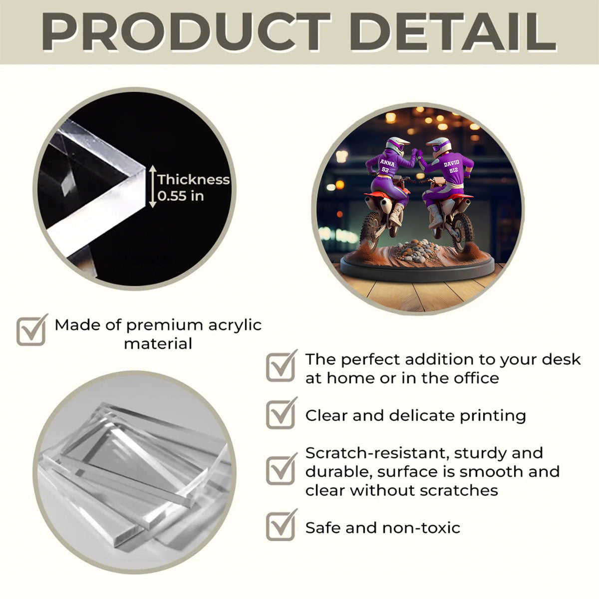 Love isn’t always smooth riding—it’s the thrilling bumps you conquer together! 🏍️This custom acrylic plaque celebrates your dirt bike duo with personalized names and dates, perfect for the couple who bonds over muddy trails, sunset rides, and arguing over whose turn it is to clean the gear.