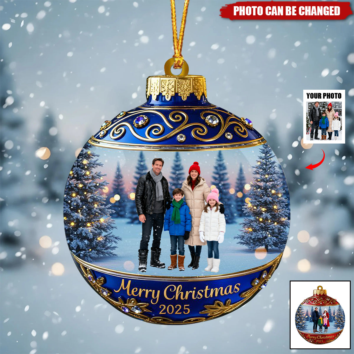 This festive Christmas ball ornament lets you upload your favorite family photo, turning a cherished memory into a sparkling holiday keepsake. It’s more than a decoration—it’s a celebration of the laughter, the love, and the moments that make your crew one of a kind. Hang it where the light catches it, and be reminded daily that the best gift of all is the family gathered around you.