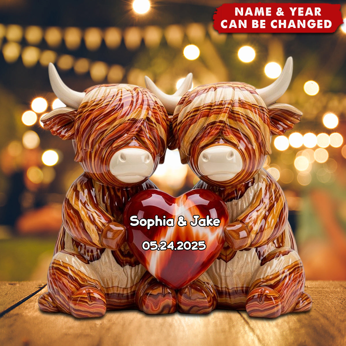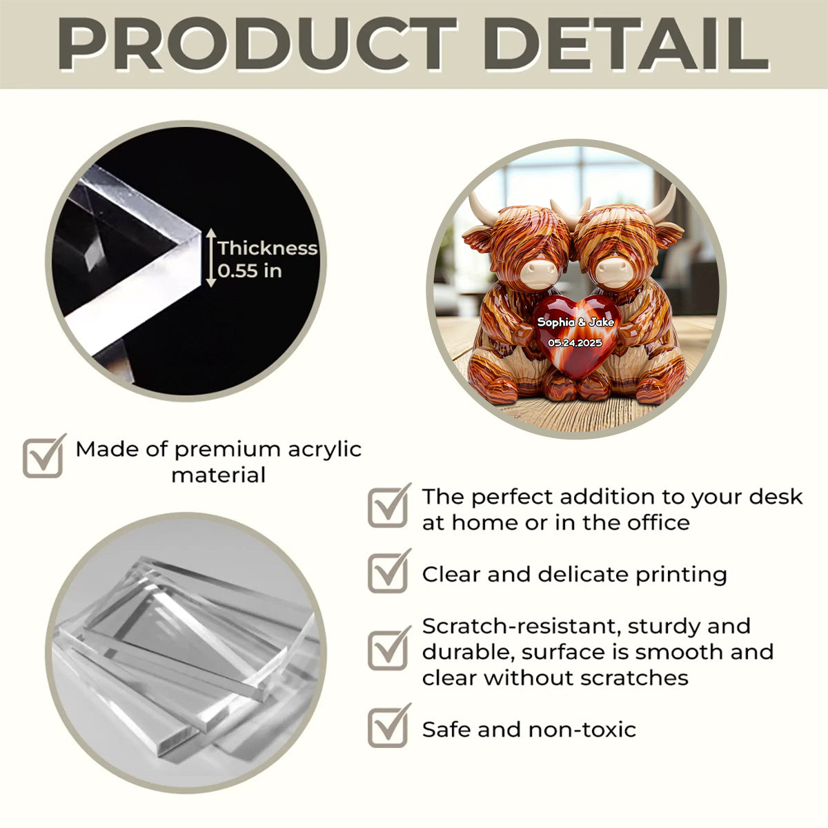 Highland Cow Couple Acrylic Plaque - Personalized Gifts For Couple