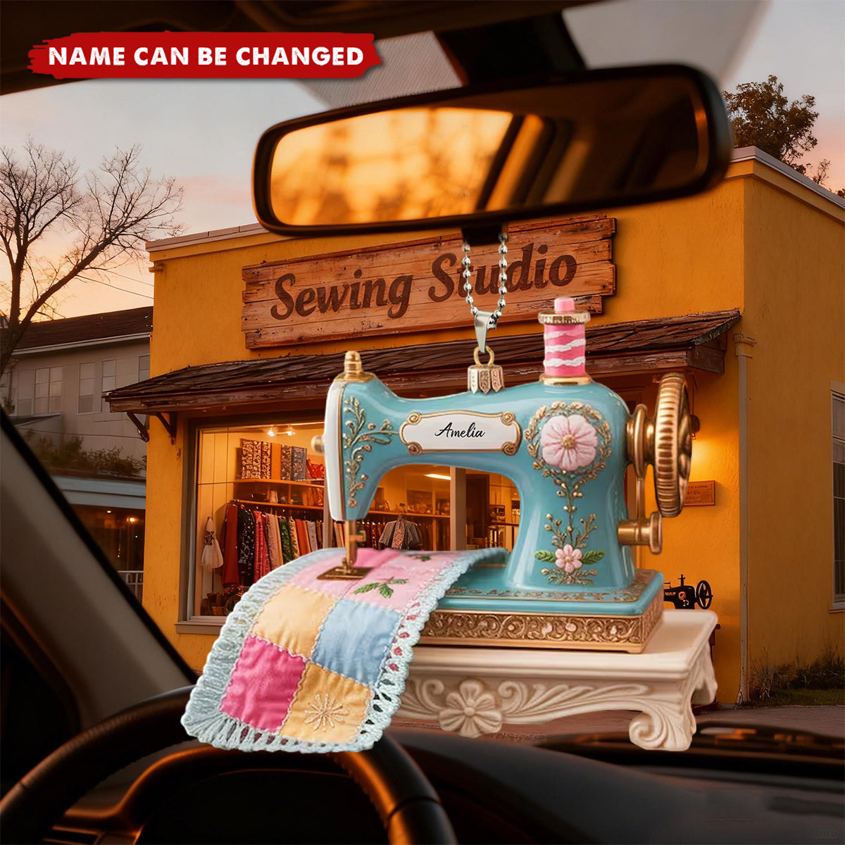 Sewing Machine Quilter Personalized Christmas Acrylic Car Ornament - Seamstress Gift